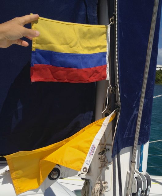 Colombian Flag Published January 14, 2013 at 528 × 640 in From Bocas del Toro, Panama to San Andrés, Colombia Down comes the Q flag and up goes the Colombian flag.