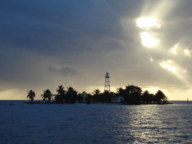 EnglishCaye Published May 1, 2013 at 640 × 480 in First sibling visit English Caye. The cruising guide said we would be welcomed by the lighthouse keeper. When we approached in the dinghy, fierce dogs barked at us from the dock and a woman on shore told us it was not okay to land. We didn’t land.