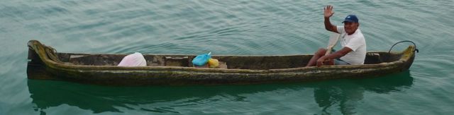 Kunas travel all over Kuna Yala harvesting coconuts. This man is sailing his coconut-filled ulu (dugout canoe) over 2 miles from Aridup to Playon Chico.