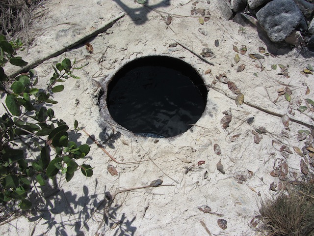 A hole for adding bottles. Richart uses a long stick to push the bottles towards the center of the island.